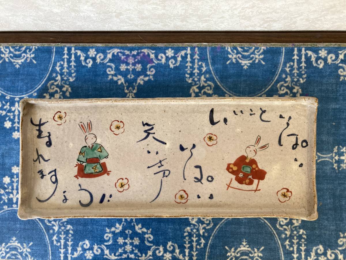 - 絵皿 大きさ縦約24㎝×横約35㎝ 「生まれますよう!」「笑い声いっぱい」 「いいこといっぱい」 うさぎ