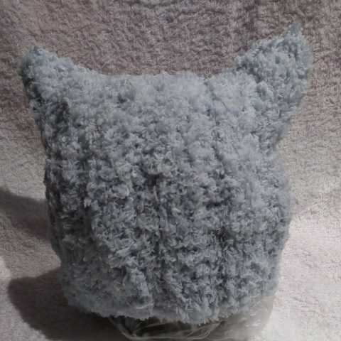 - ふわふわ毛糸の ネコ耳 帽子 サックス色 チャイルドサイズ ハンドメイド ニット