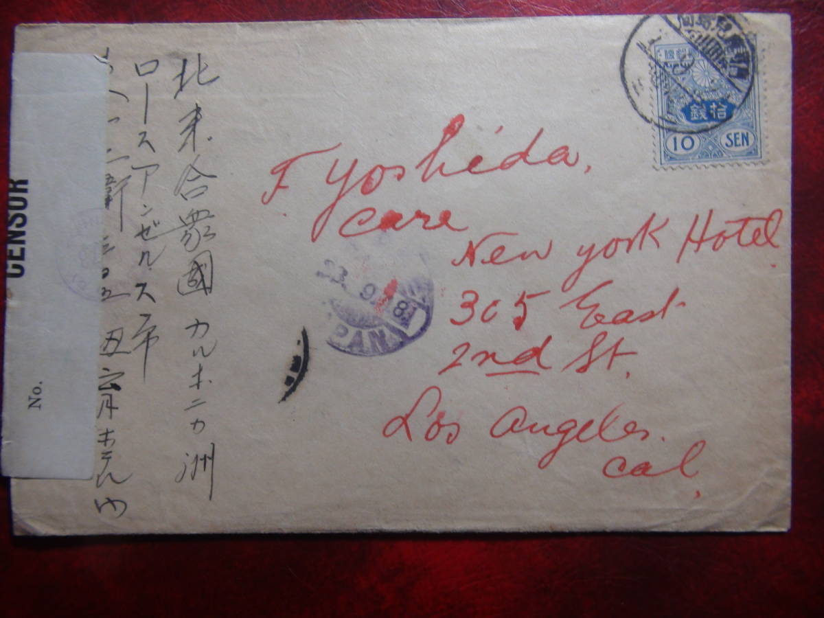 - 検閲郵便史/ 田沢10銭 鉄道郵便 門司鹿児島間 /1918年 米国検閲 OPENED BY CENSOR
