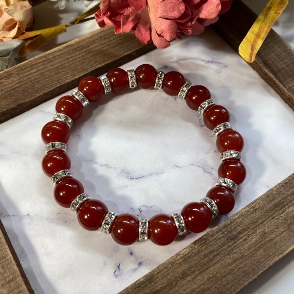 - 赤瑪瑙 レッドアゲート パワーストーン ブレスレット 10mm 天然石ブレス (シルバー) 数珠ブレス メンズ・レディース 男性 女性