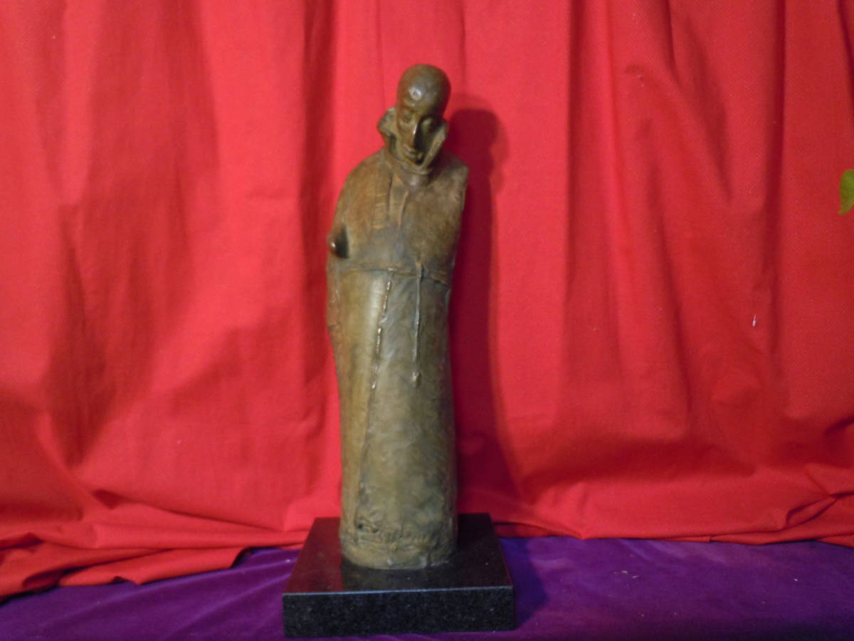 > 【ARS書店】『ブロンズ像』立像~彫像・純銅・作者?下部に:camille?刻印有り~・材質:台・黒色天然石/ 高さ=約:38cm・重さ=7kg