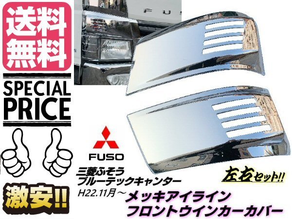 > 三菱 ふそう ブルーテック キャンター シルバー メッキ ウインカー カバー アイライン フロント ガーニッシュ ウィンカー 送料無料/4