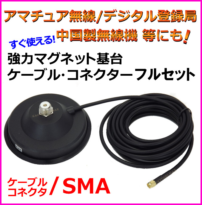 > 強力マグネット基台&ケーブル・コネクターセット SMAコネクター/デジタル簡易/デジ簡/デジタル登録局/アマチュア/中国製無線機 等に 新品