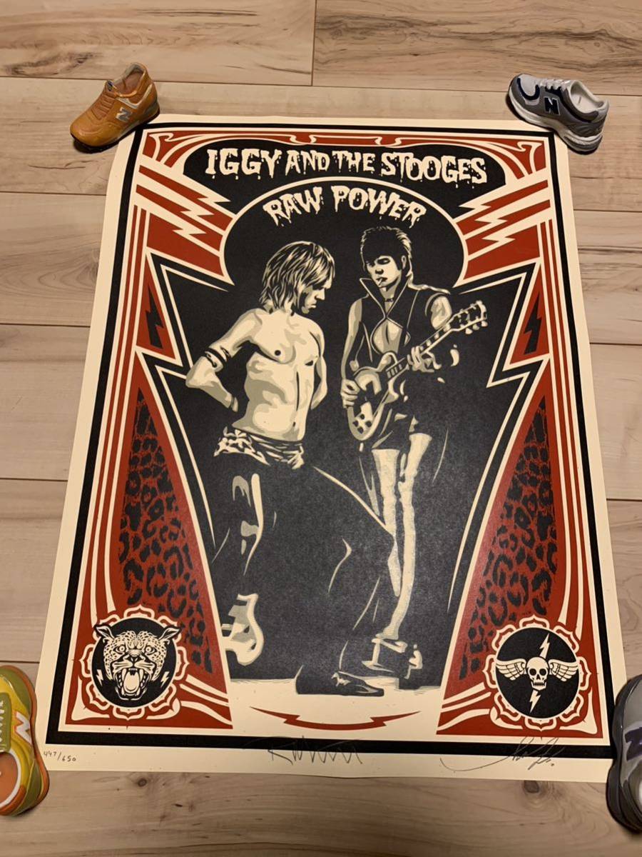 > 希少650部限定 OBEY オベイ シェパード フェアリー イギーポップ Raw Power スクリーンプリント サインエディション入り