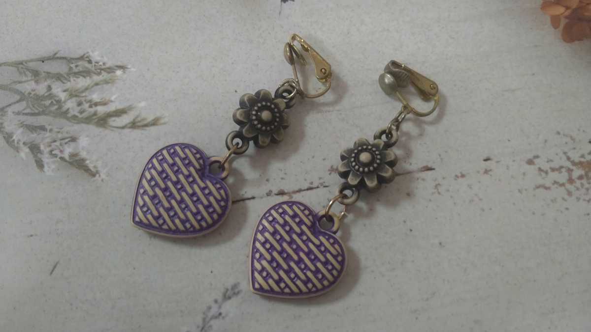 - □フラワー&ハート・揺れるイヤリング□紺×グレー系□