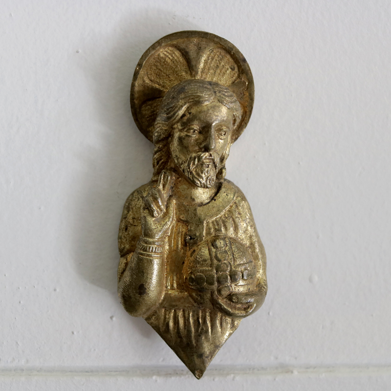 - 19世紀 教会の壁で装飾されていたお品 フランスアンティーク モチーフ 壁掛け キリスト 教会 ゴシック マリア様 十字架 クロス 真鍮 :C3