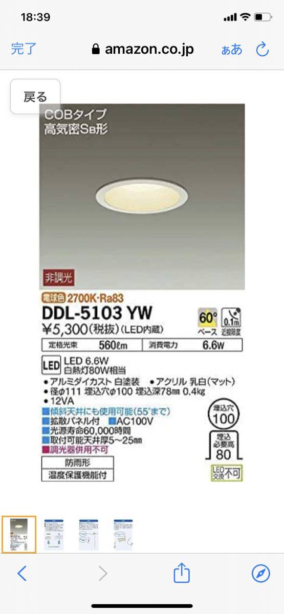 - LEDダウンライト (電球色) DDL-5103YW (白)