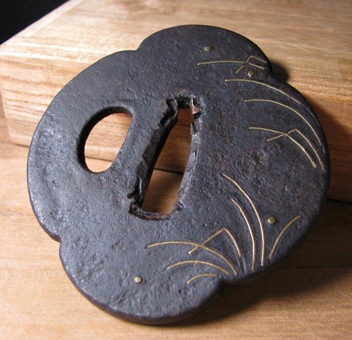 - 時代武具 鉄地鍔 平安城象嵌 桐箱付 江戸時代/鐔/23c033