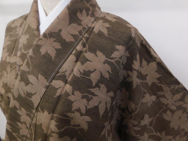 - 〔楽布特選〕P22190 ざっくりした紬地型染め小紋袷 未使用仕立て上がり品 オークション t 値下げ中