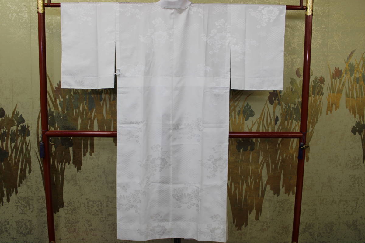 > きもの今昔4915 長襦袢 広衿袖無双身頃単衣仕立て ポリエステル100%白綸子地 未使用に近い 身丈131cm