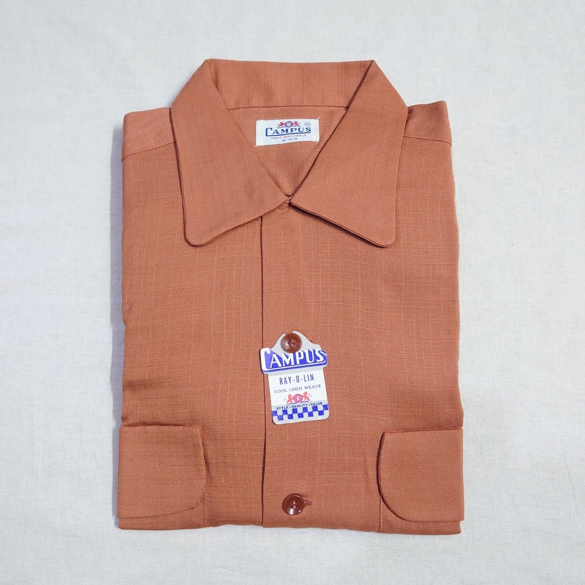 - 50s デッドストック レーヨンリネン レーヨンコットン オープンカラーシャツ ビンテージレーヨンシャツ ビンテージリネンシャツ 60s