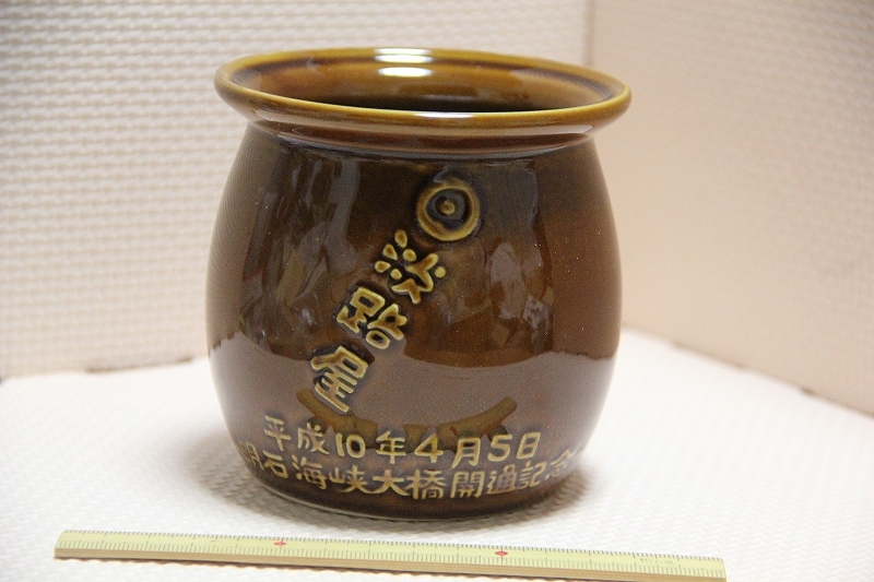- 陶器製 明石名物 ひっぱりだこ飯 容器 平成10年4月5日 明石海峡大橋開通記念 淡路屋 検索 小物入れ 駅弁 記念 グッズ