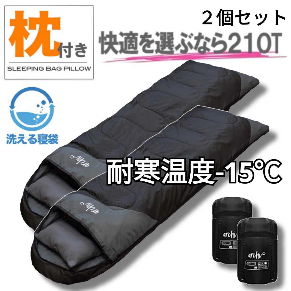 > 残りわずか 新品 2個セット 枕付き 収納袋付き 封筒型シュラフ 寝袋 洗える -15度 210T 防水 1.9kg archi 即購入OK 【※値下げ不可※】