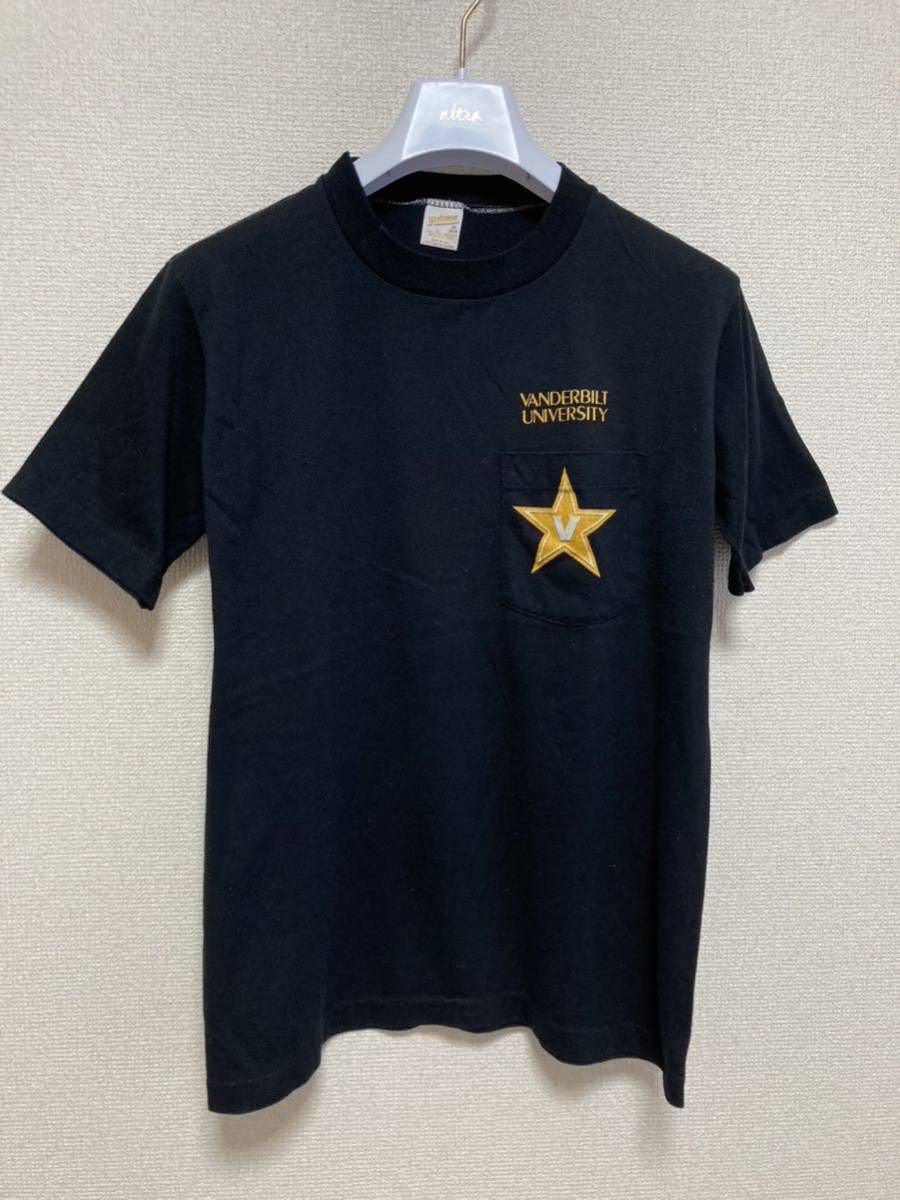> 80's USAヴィンテージ sportswear ポケT カレッジ Tシャツ 半袖Tシャツ VANDERBILT UNIVERSITY 黒 M(38~40) USA製 ブラック/80年代