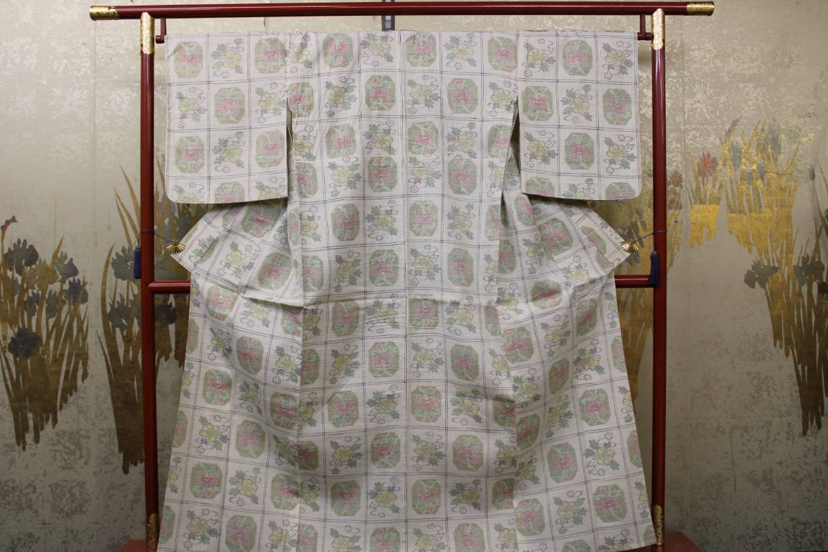 > きもの今昔4934 単衣のきもの バチ衿手縫い仕立て 縮み加工がしてあります 麻ではなく正絹と判断 身丈156cm