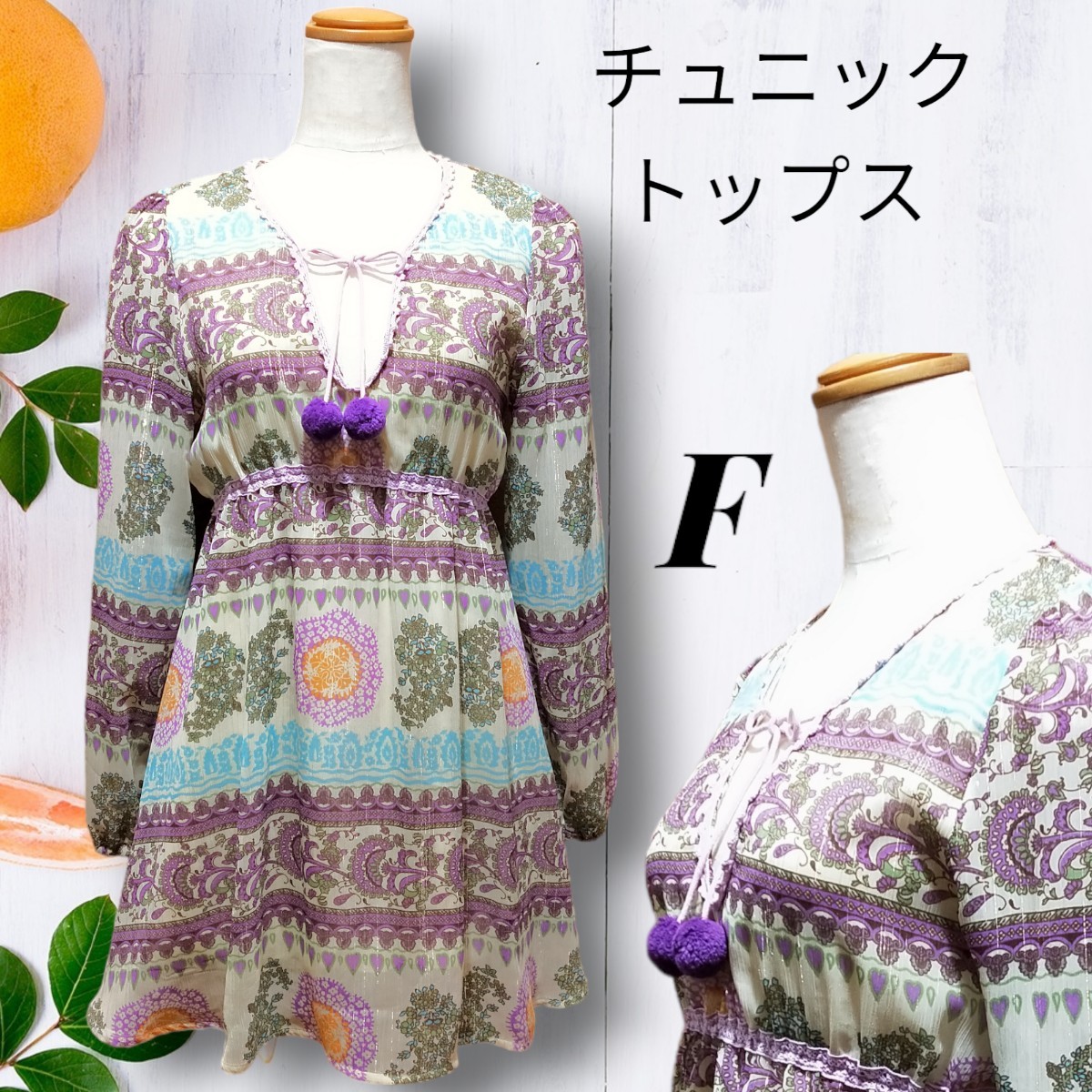 - キュートな db 長袖 オーガンジー チュニック トップス レディース フリーサイズ