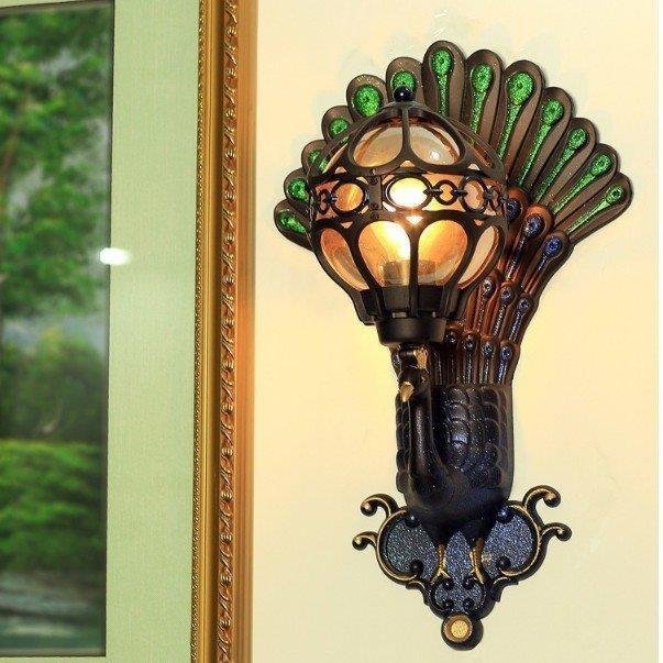 - 未使用★壁掛けライト★孔雀★玄関★照明アンティーク風★防水★ポーチ・ガーデン・ブラケットライト★屋外★レトロ★オシャレ