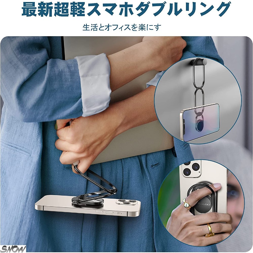 > ブラック マグネット車載ホルダー付 縦置きできる 持ちやすい マルチ リング スタンド 落下防止 キッズ タブレット スマホ ケータイ