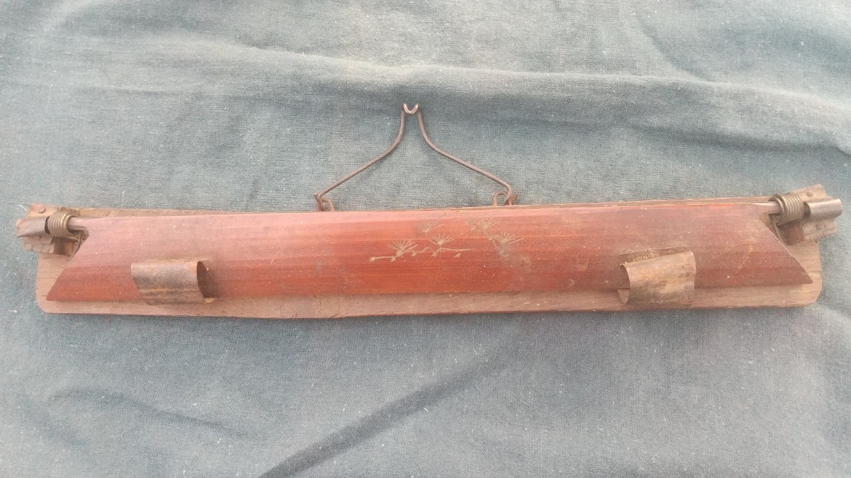 - 古道具 カレンダーや行事予定表を挟み吊るす木製器具 昭和前期