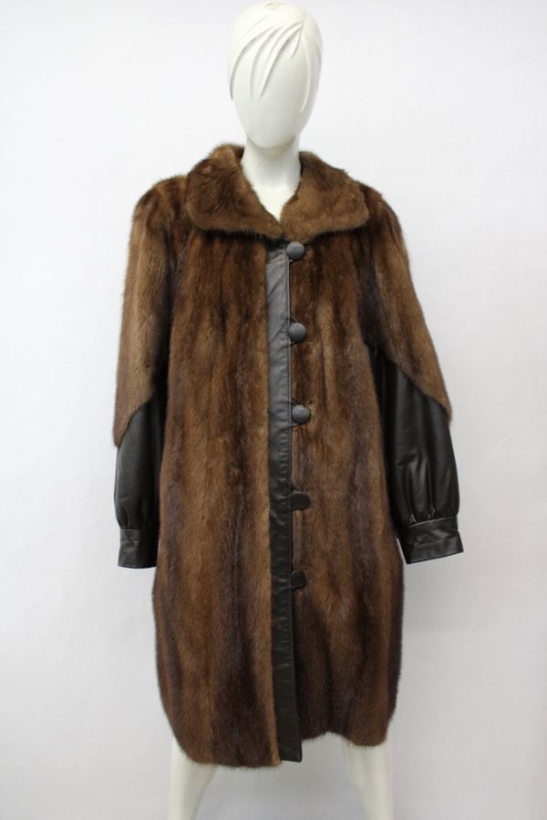 - カナディアン デミバフ・ミンク&レザー毛皮ファー・コート アメリカンサイズ8