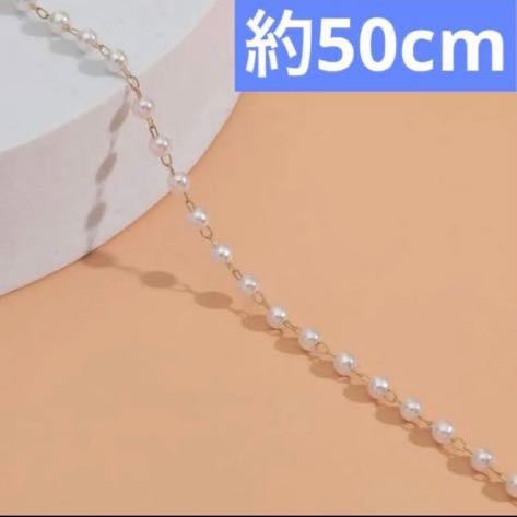- ハンドメイド用 フェイクパール ゴールド チェーン 約50cm