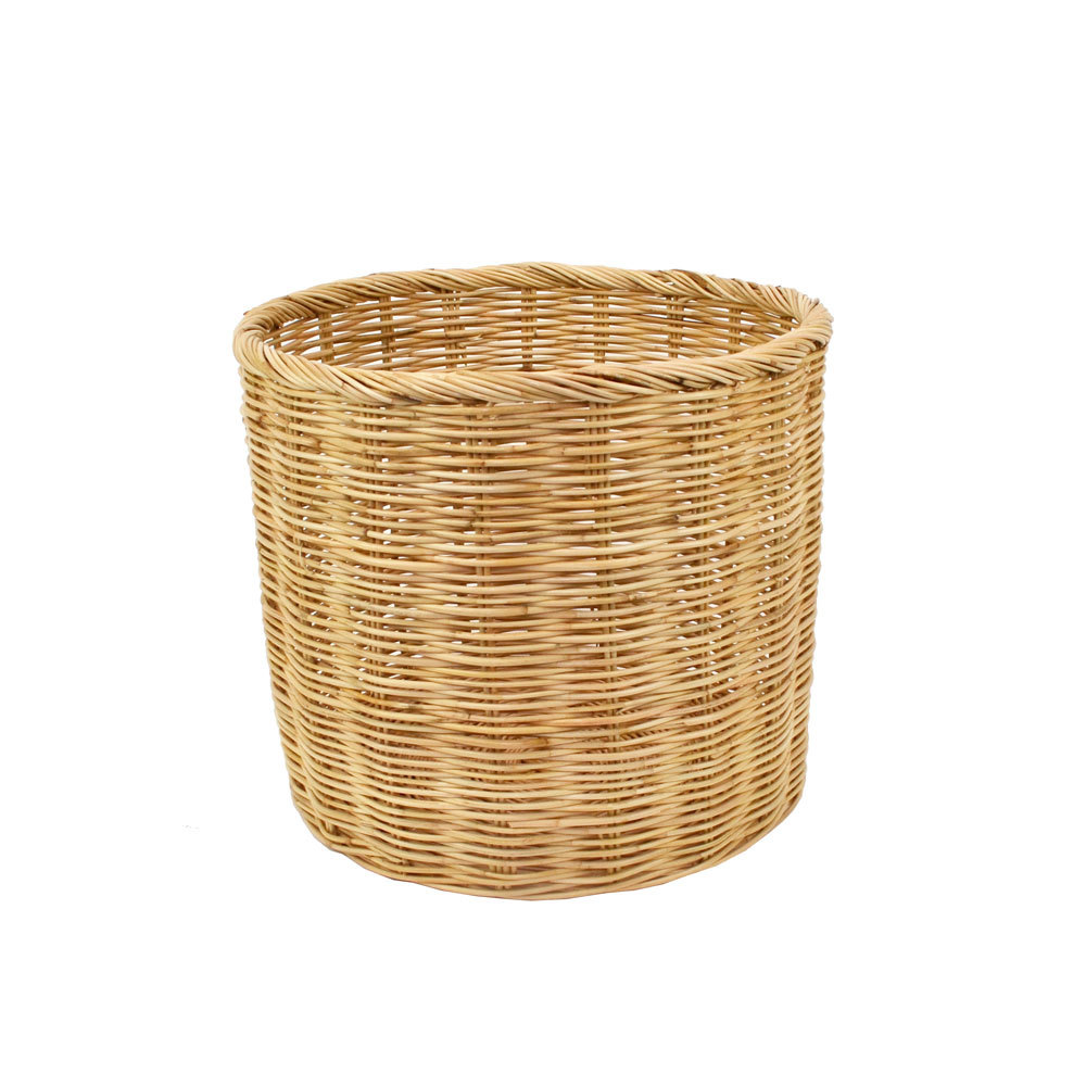 - タイ製ラタン ふち付き 筒型バスケット L 鉢カバー 収納
