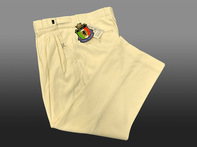 > 【送料無料】40597-3-a65-2 ウエスト69-75cm 股下72cm オフ白系 Franco Collezioni 4タックビット付 スラックス 脇シャーリング ストレッチ