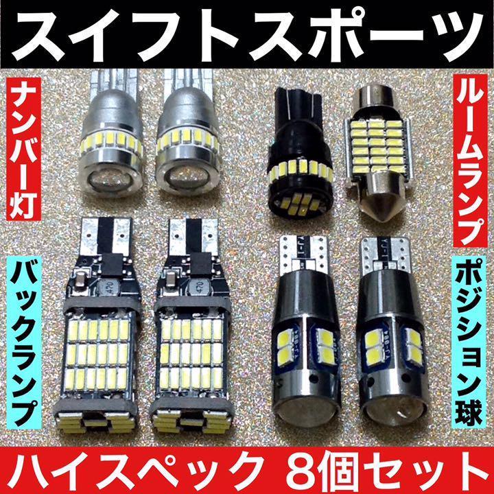 - スズキ スイフト スポーツ ZC72 ZD72 爆光 バックランプ ポジション球 ナンバー灯 T10 LED ルームランプ 純正球交換用 ホワイト 8個セット