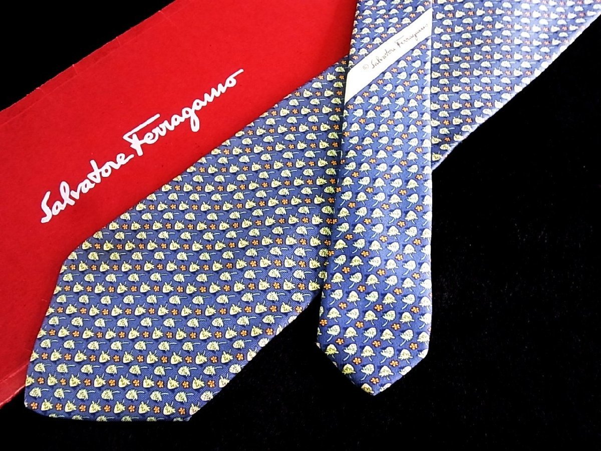 > ★今週の特売★3316★高級ブランド【キャラ柄】★フェラガモ【苺 果物 花 小花 植物 柄】ネクタイ★