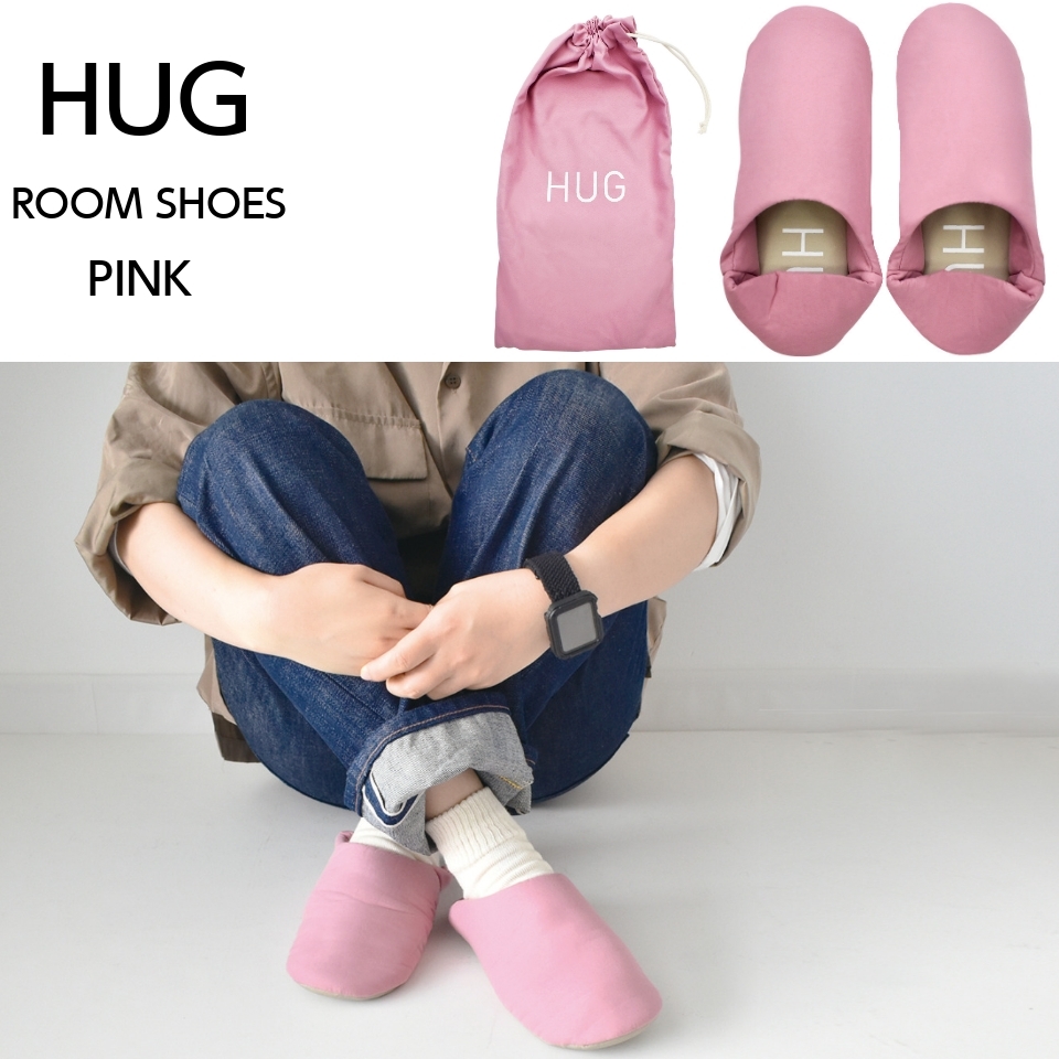 - HUG ROOM SHOES バブーシュスリッパ ポーチ付き PINK スリッパ 23.0-24.5 室内履き