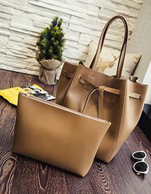 > 【新品】 ベージュ レディース レザー トート バッグ キャメル 2way 旅行 カバン ポーチ付 大容量 ショルダー レディス #91