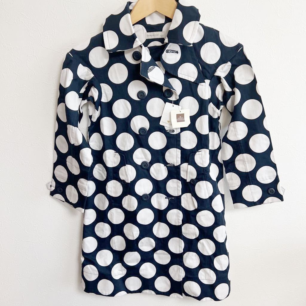 > 新品 ギンザのサエグサ Sayegusa plus コート ドット柄 ネイビー サイズ9歳