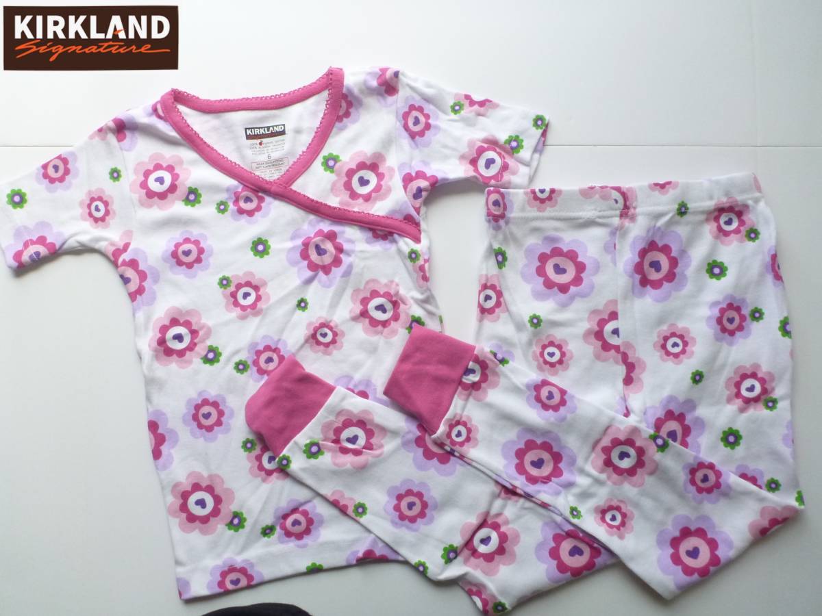 > 新品 KIRKLAND カークランド ★上質オーガニックコットン100% ピンク 花柄 半袖 パジャマ 上下セット 6 120