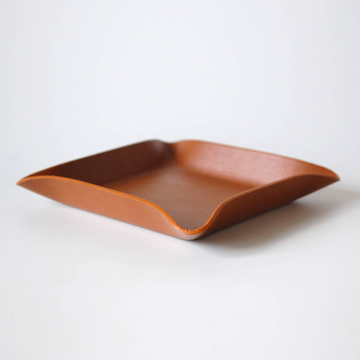 - 送料込み★お手入れいらずリサイクルレザースクエアトレイ カルトン マネートレー小物入れ アクセサリー 腕時計 鍵 収納★キャメル
