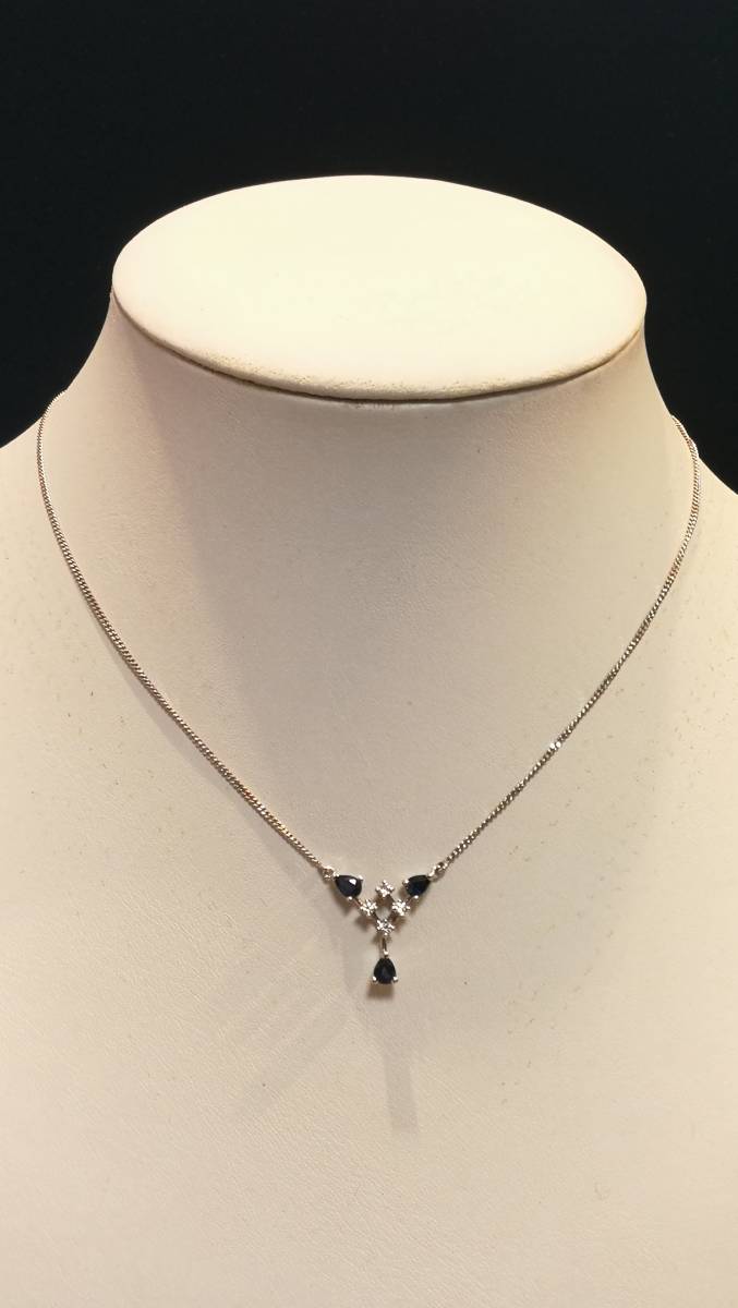 - K18 WG ネックレス&ペンダント・ダイヤモンド・サファイヤペンダント