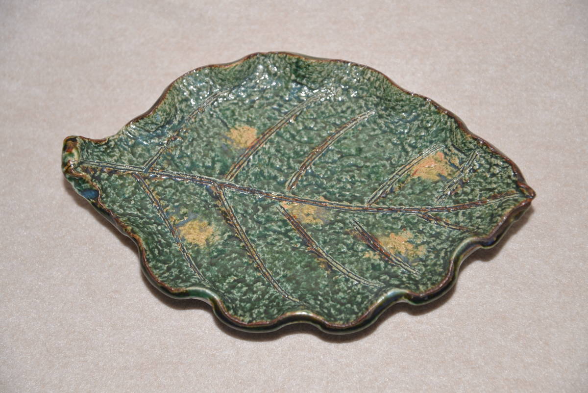 - 本物保証 北大路魯山人 織部木の葉台皿 箱なし 本物返品OK 152