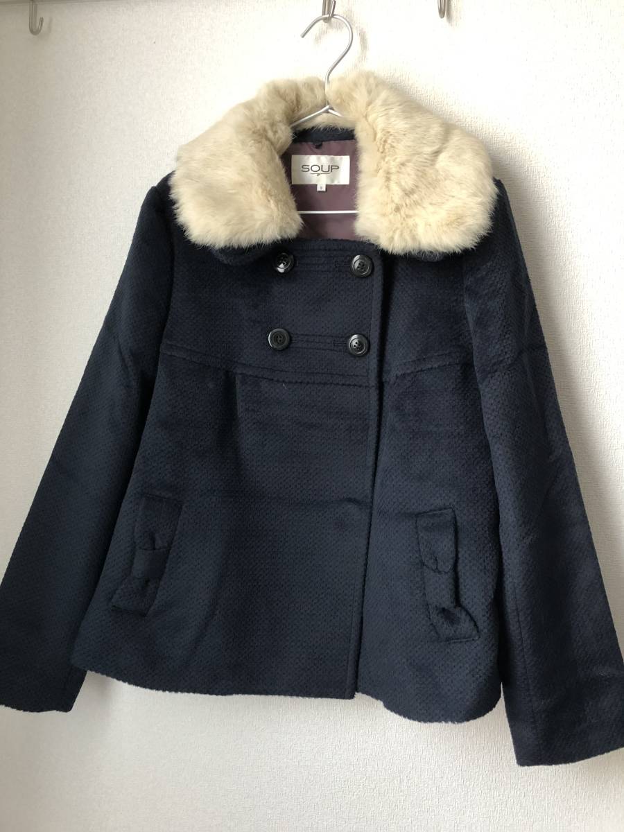> 未使用☆SOUP☆ラビットファー付きAラインピーコート☆ネイビー