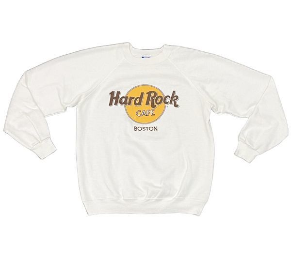 > 80’s 90's 米国製 ヘインズ Hanes ハードロックカフェ Hard Rock Cafe ボストン スウェット 白 L [ta-0747]
