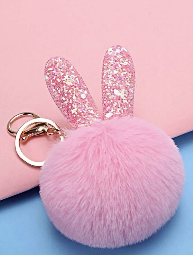 - 新品バッグチャーム ファーチャーム うさぎウサギ兎 ポンポン ピンク キーホルダー