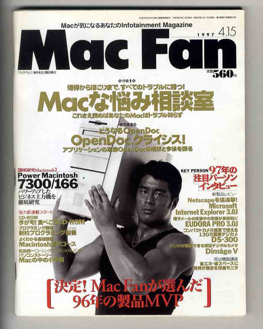 書名/記事: 97.4.15 マックファン MacFan/特集1=Macな悩み相談室、特集2=OpenDocクライシス、徹底研究Macintosh - Power Macintosh 7300/166、97年の注目パーソンインタビュー、プログラミング講座、…