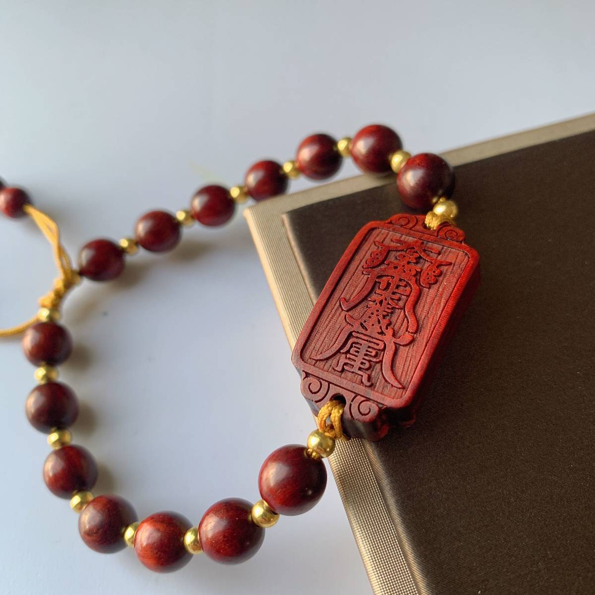 - ◇紫檀◇ブレスレット◇男女兼用◇太歳符 彫刻◇天然木◇数珠・念珠・木珠◇巾着袋付き◇プレゼントにも 020B5204