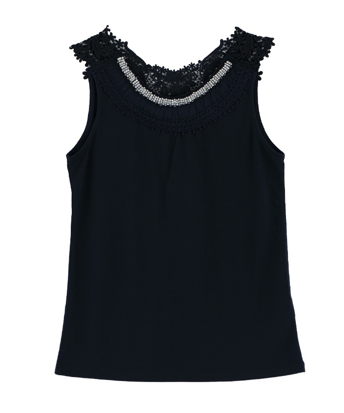 > 450◇バックモチーフレースタンク 紺 ネイビー axes femme アクシーズファム FN1X18