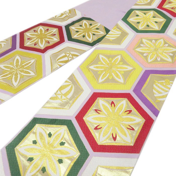 > ★きもの北條★ 振袖用 西陣織 亀甲花文 リサイクル 着物 成人式 結婚式 結納 パーティー 袋帯 A710-20 【未仕立て】
