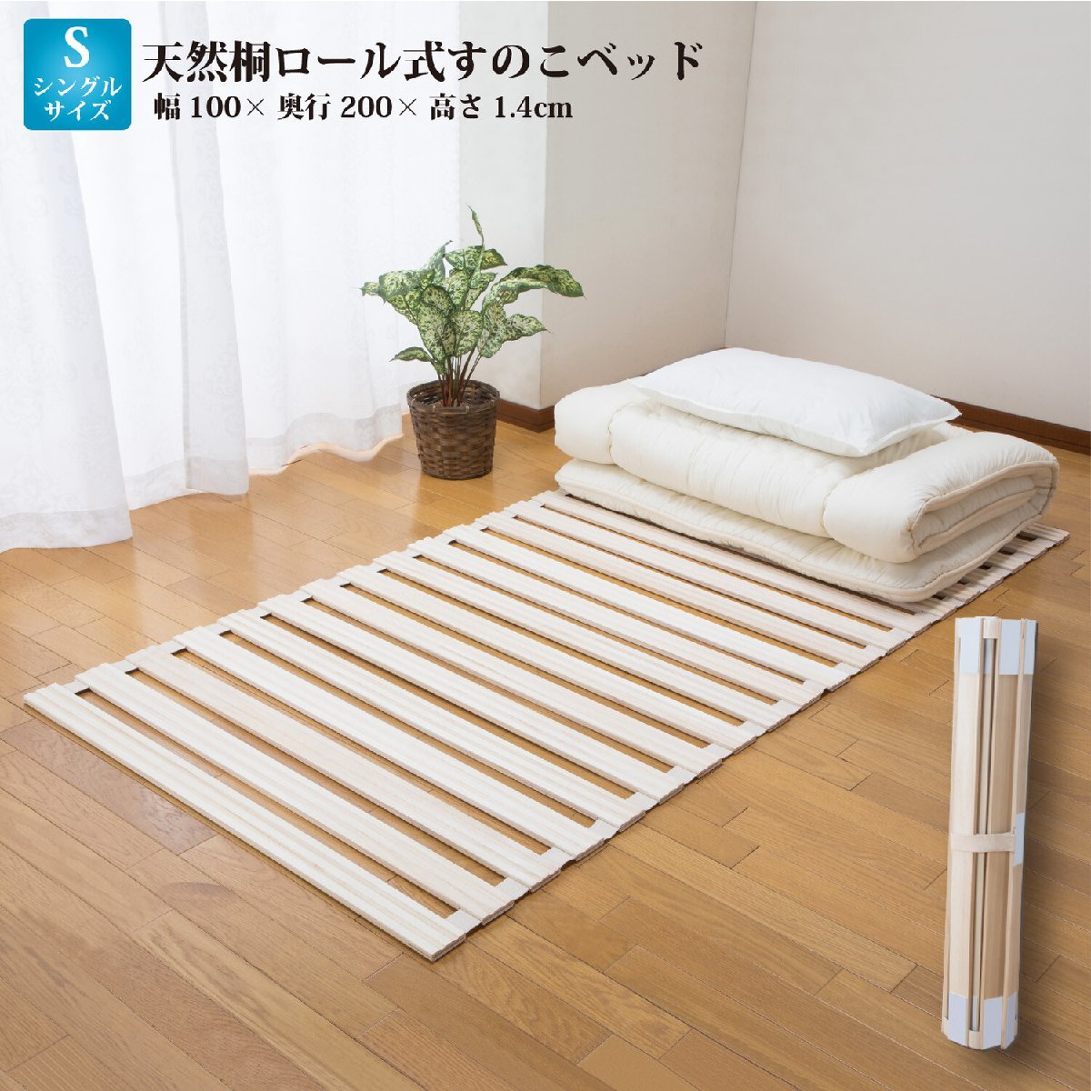 - 天然桐ロール式すのこベッド シングル LS-5(カビ対策 湿気対策 除湿 天然木 桐材 防湿)