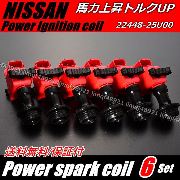 - 送料無料 NISSAN 日産 ローレル GC34 GNC34 22433-25U00/22448-25U00 ダイレクト イグニッションコイル /RED/赤/6本 RB25DE/RB25DTE