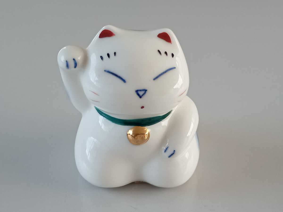 - 【中古縁起物】愛らしい招き猫の陶製置物