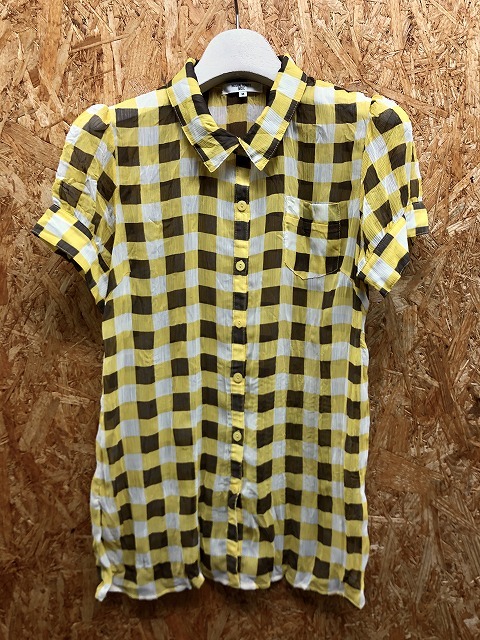 > ナチュラルビューティーベーシック NATURAL BEAUTY BASIC 薄手 シャツ 半袖 チェック柄 M イエロー×ブラウン×ホワイト レディース