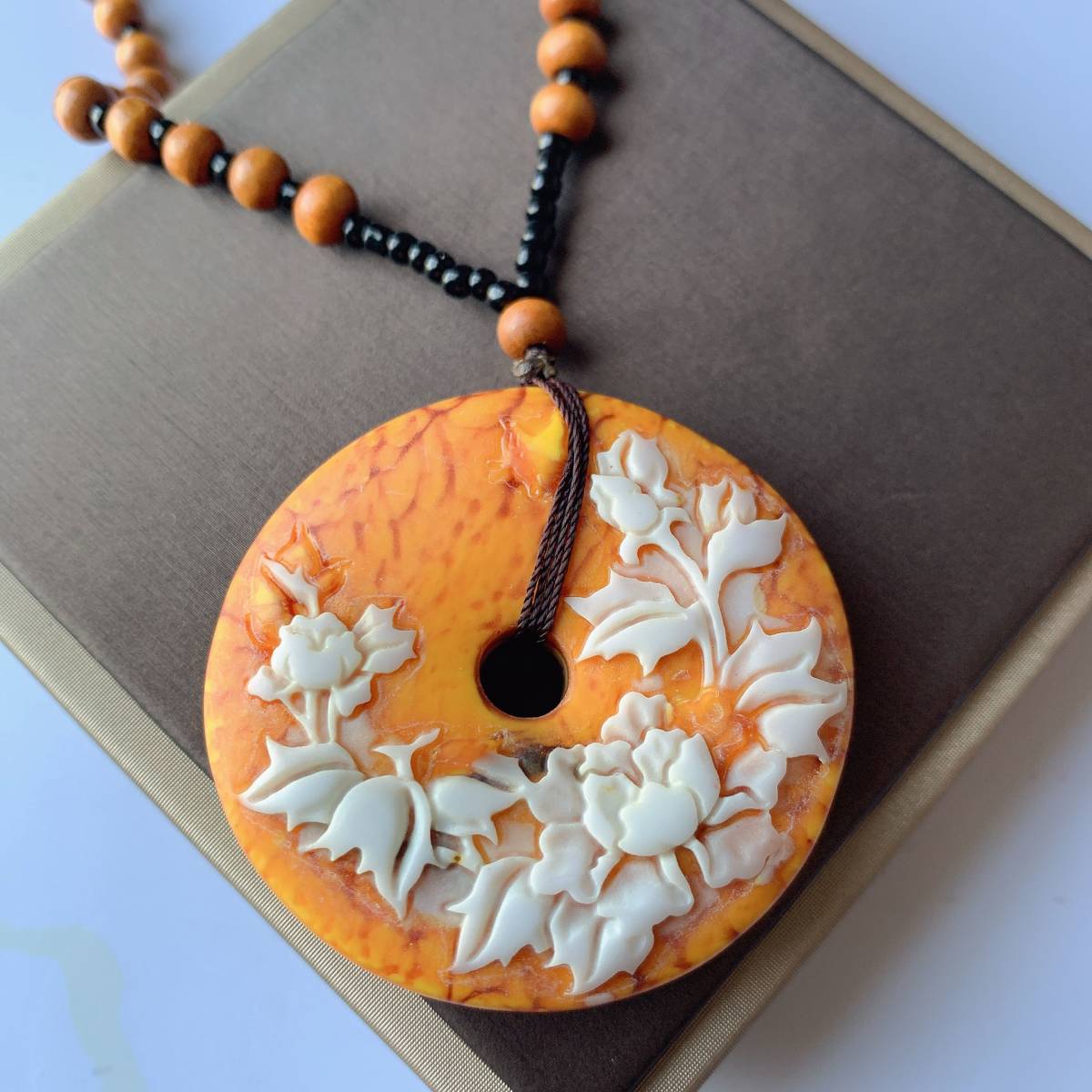 - ◇人工アンバーグリス◇ネックレス◇ペンダント◇牡丹形◇セーター チェーン◇巾着袋付きプレゼントにも 010P53113