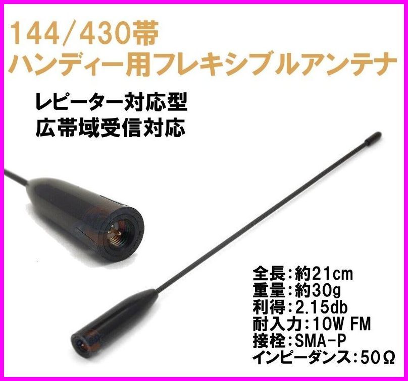 - 144/430MHz帯 ハンディ フレキシブル アンテナ SMA-P型 新品 広帯域受信対応 /エアーバンド アマチュア無線 無線機 トランシーバー 基台 に