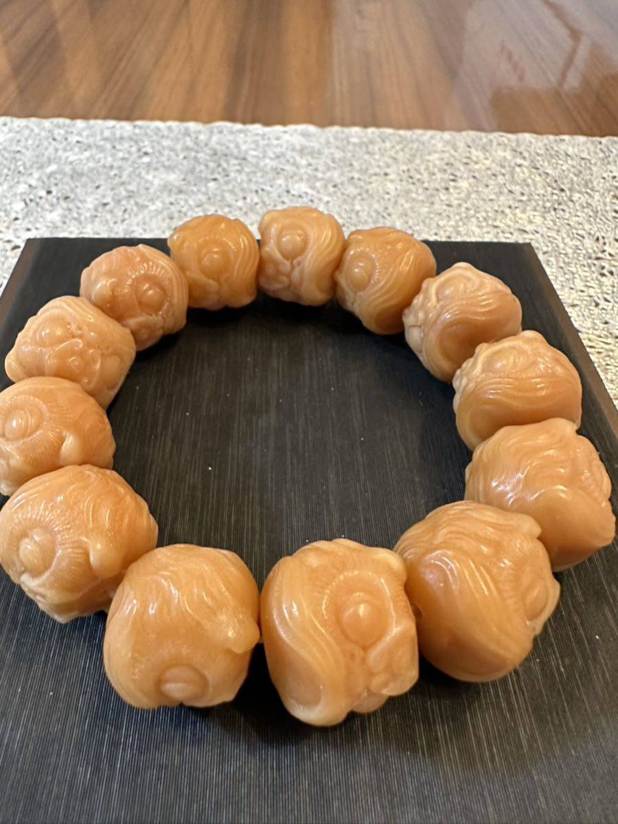 - Z-054天然 風化菩提 ブレスレット 雕刻ライオン 開運お守り 大玉18mm